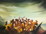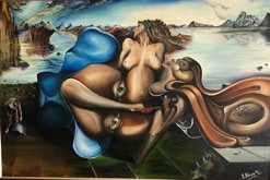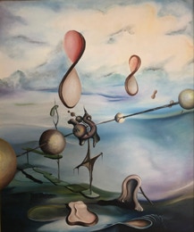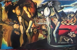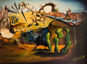 Soft construction with boiled beans, Premonition of a civil war (slightly stretched version) after Dali. Oil on canvas 48”x36”