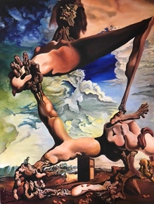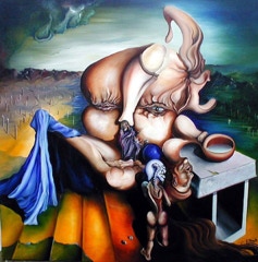 Soft construction with boiled beans, Premonition of a civil war (slightly stretched version) after Dali. Oil on canvas 48”x36”