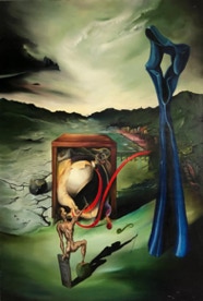 The paranoiac voyeur. 1995 24”x18” oil on board framed